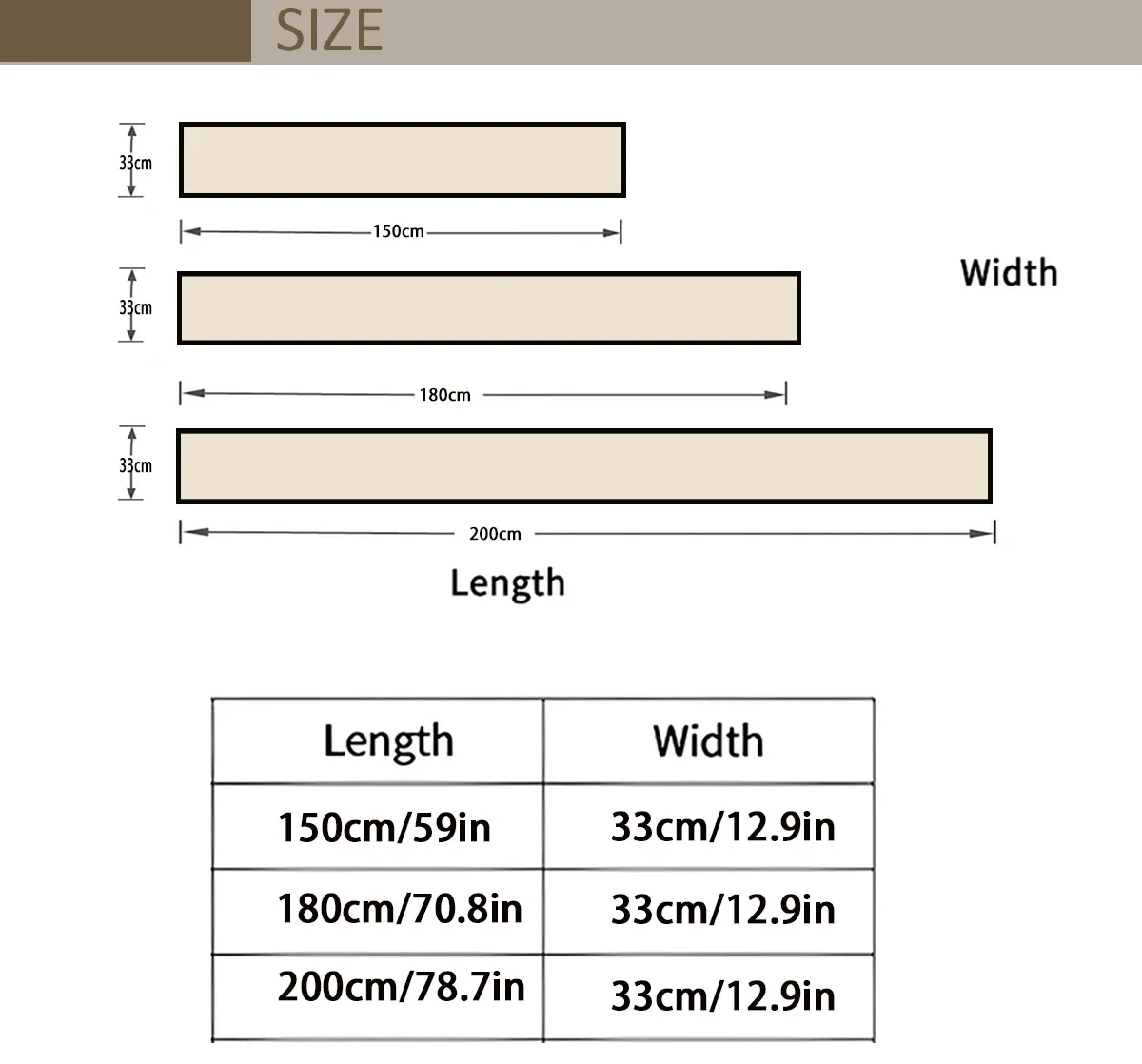 200*33 cm/78.75*12.9 in
