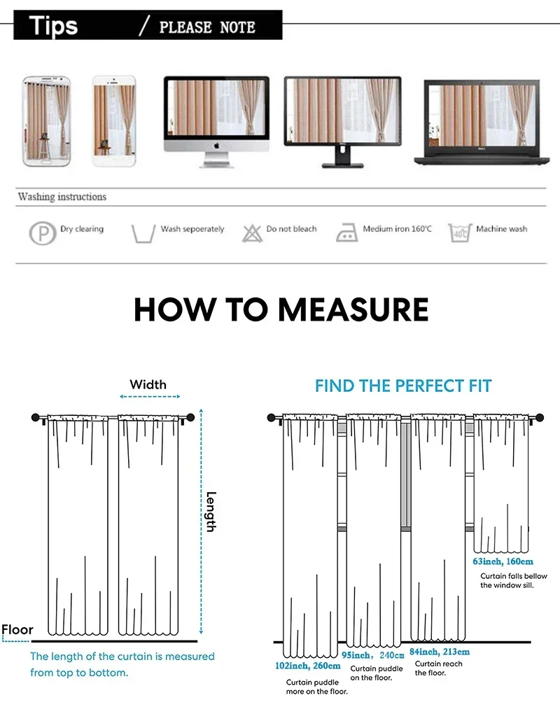 4. Due to the different monitor and light effect, the actual color of curtain might be slightly different from the color shown on the photo.