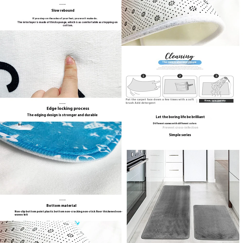 4. The bottom of the floor mat uses plastic stains, which does not stick to the floor, does not yellow, is more non-slip, and more durable. Package Contents: 1 rug/floor mat