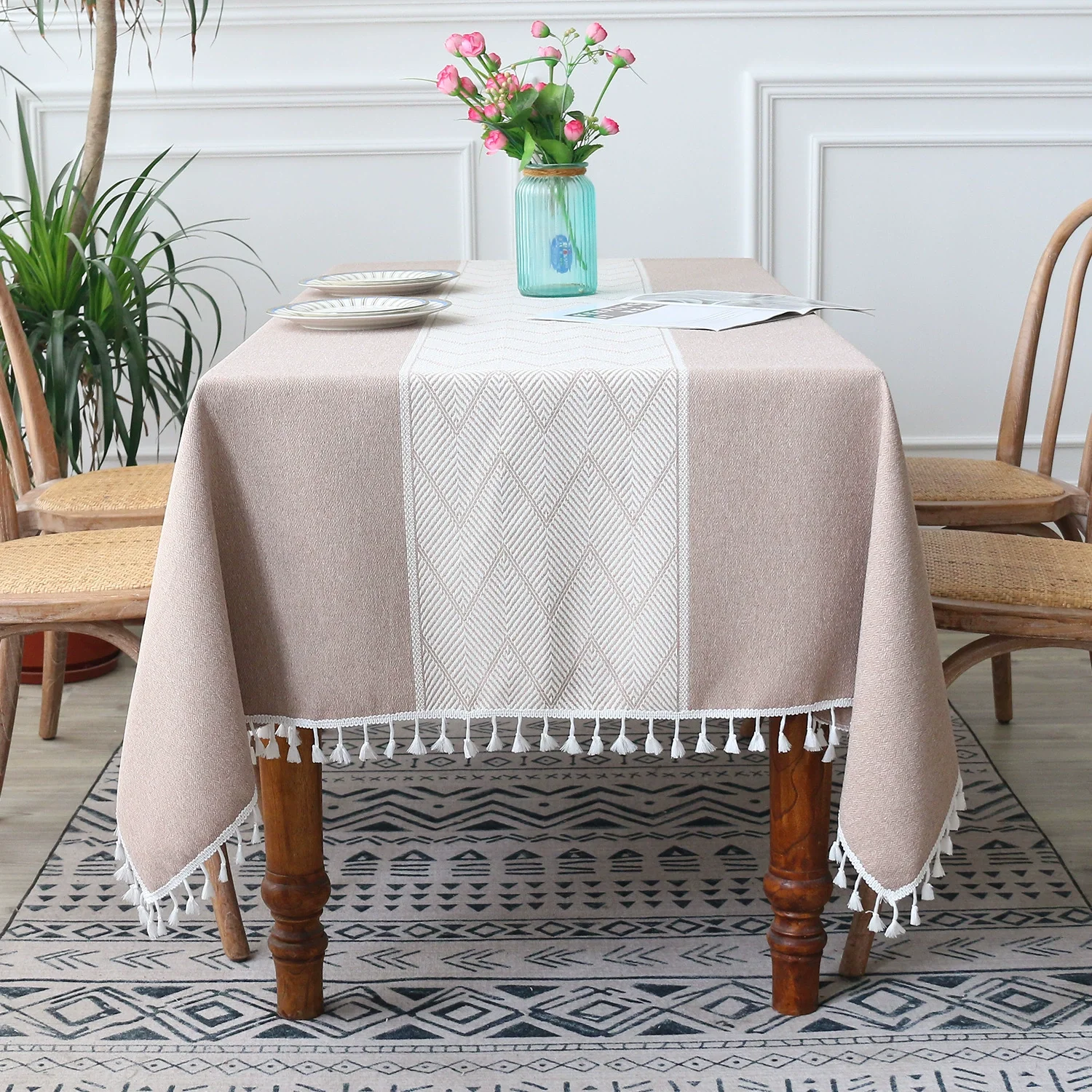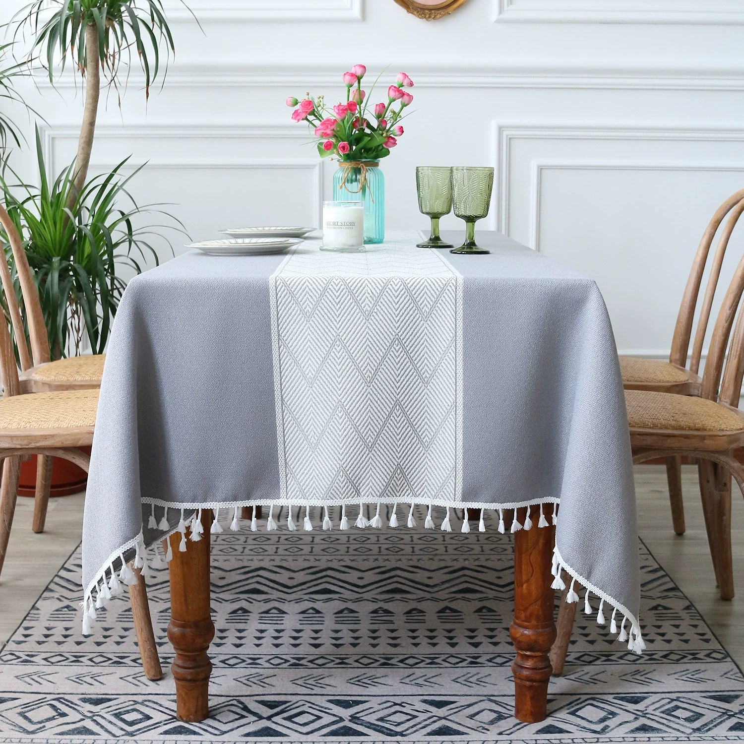 【Multipurpose and Occasion】 Our farmhosue design table cloth with classic embroidery, ends with cute tassels, can be used as indoor tablecloths for the kitchen, dining room, living room, coffee table cover, and banquet. Or outdoor tablecloths for weddings, birthday parties, patios, picnics, buffets, camping, celebrations and barbecues.
