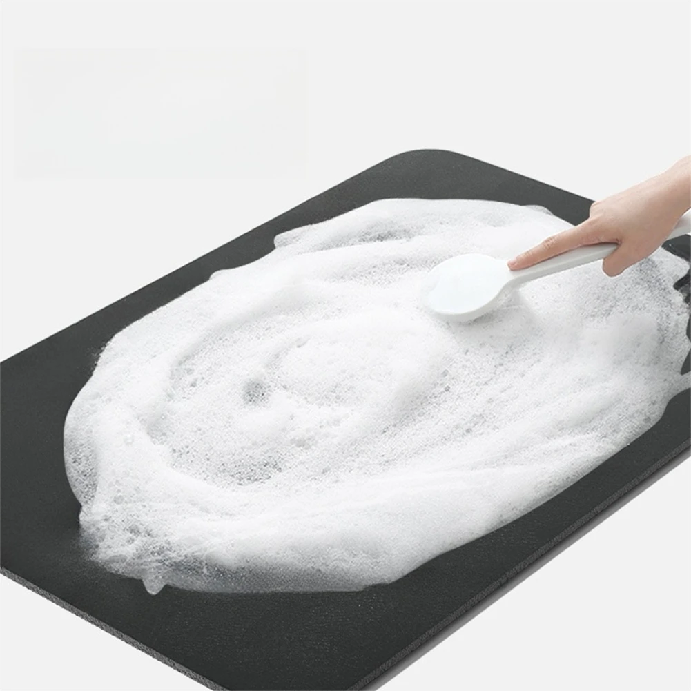 *Quick Dry Technology: This diatomite stone bath mat is designed to absorb water from wet feet instantly, that any moisture evaporates within minutes for a dry and comfortable post-shower experience.